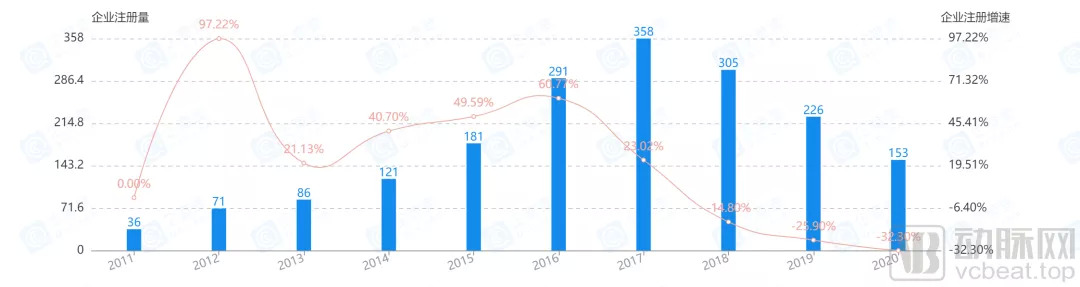 (美容仪相关企业注册趋势,图片来源:企查查专业版)