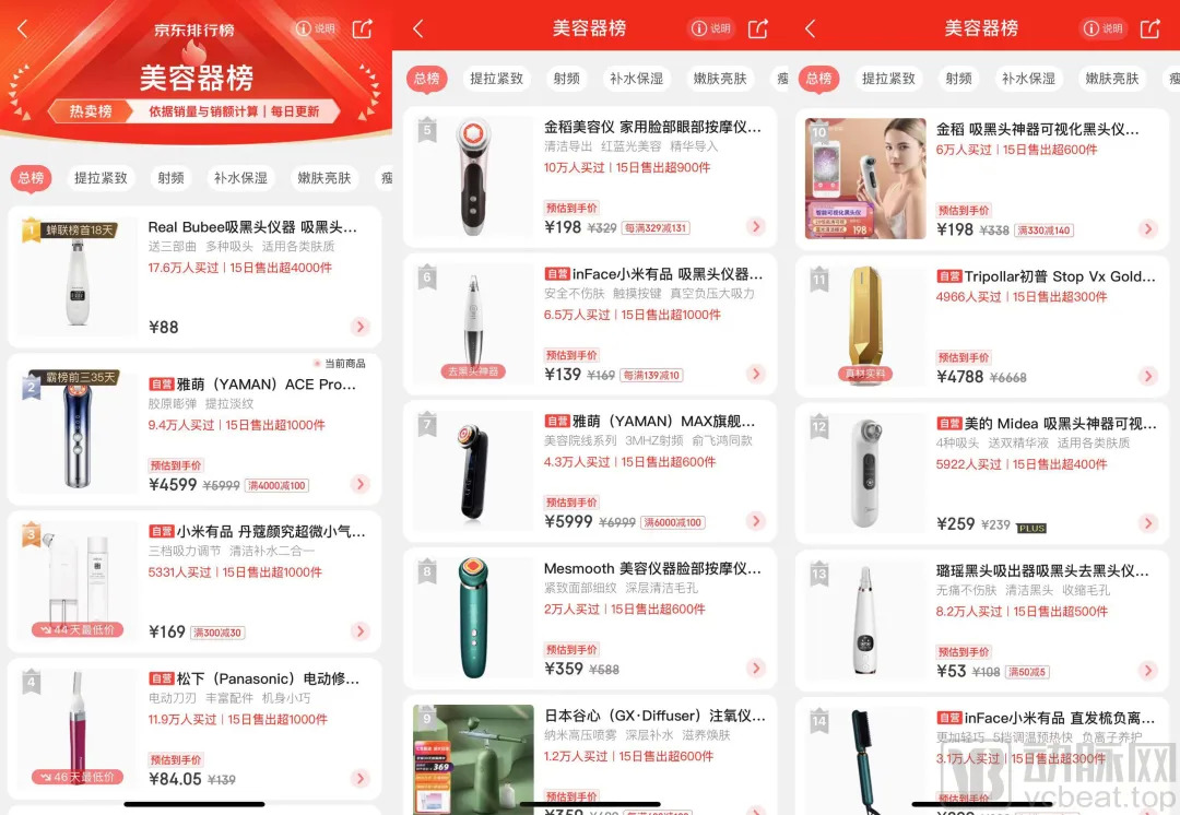 (京东平台上的美容器热销榜单 截图日期:10月9日)