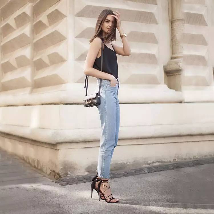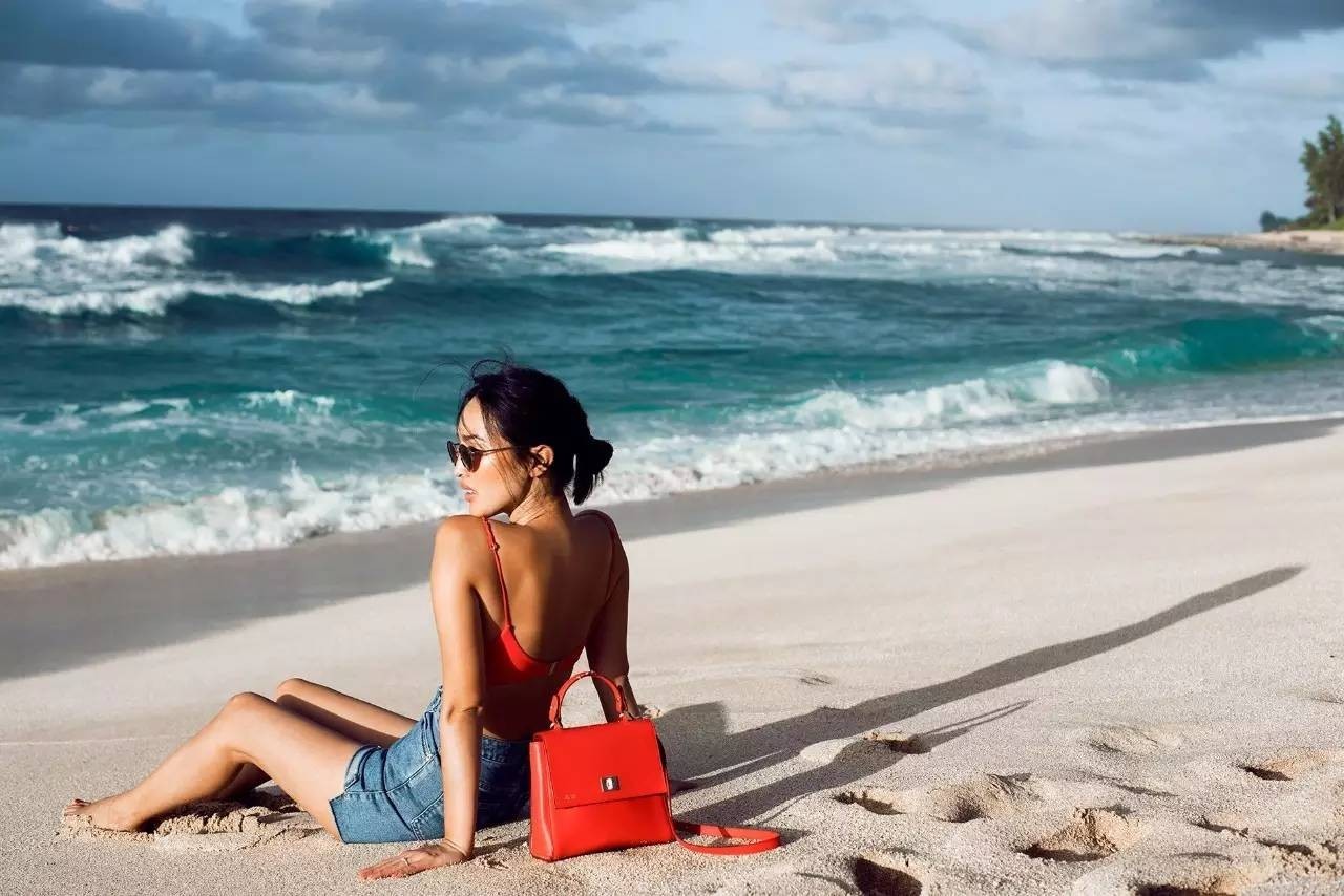 在沙滩上走,可以穿泳衣Bra+牛仔裤。