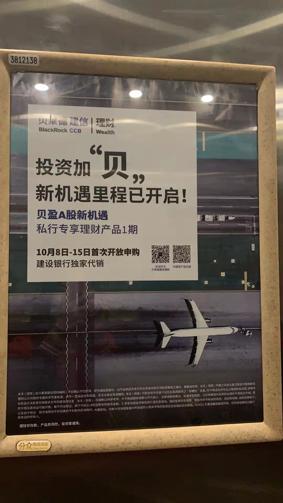 尽管这已经是目前理财子发行的最大规模的权益类产品,但距离此前贝莱德建信理财设置的募集上限——50亿元仍有一定距离。因此,针对此次开放申购,贝莱德建信理财也加大了营销力度。有投资者对界面新闻记者表示,近日有在电梯中看到“贝盈A股新机遇”的海报广告。