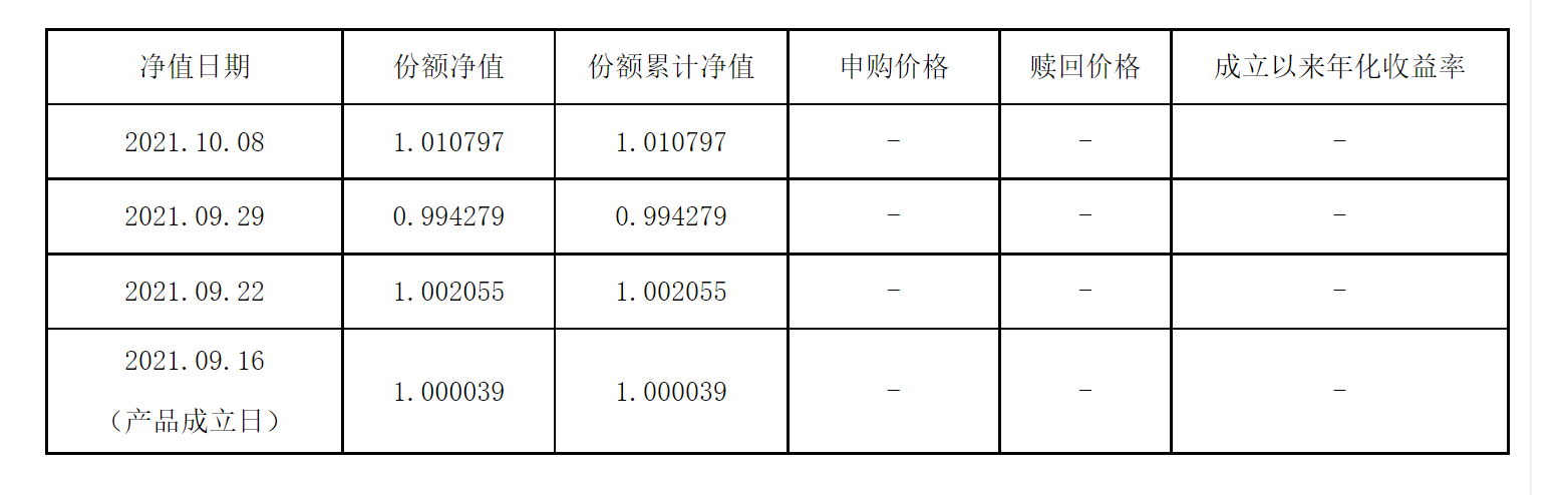 从净值走势来看,投资经理已经开始小幅建仓。建行官网披露的公告显示,该产品于9月29日当日净值一度遭遇“破净”,10月8日,其净值又小幅反弹至1.010797。
