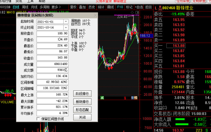 二级市场数据显示,赣锋锂业2021年以来的累计股价涨幅达62.42%。