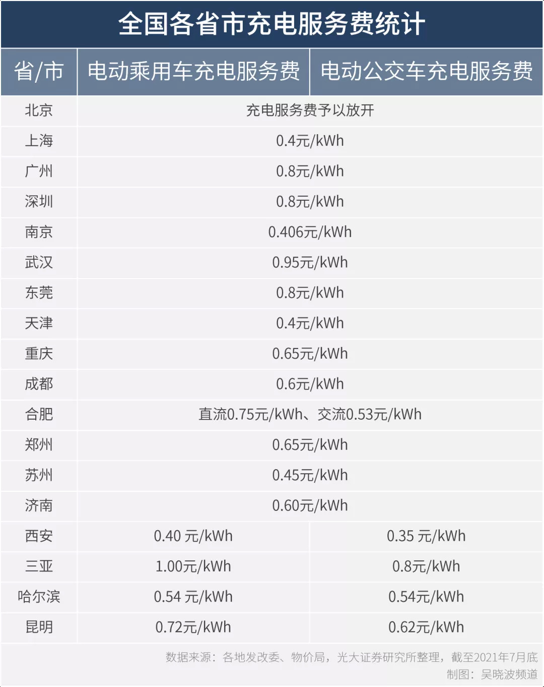 据光大证券统计,全国各地的基础电费一般在0.4元/kWh-0.6元/kWh之间,充电服务费一般为0.4元/kWh-0.9元/kWh。