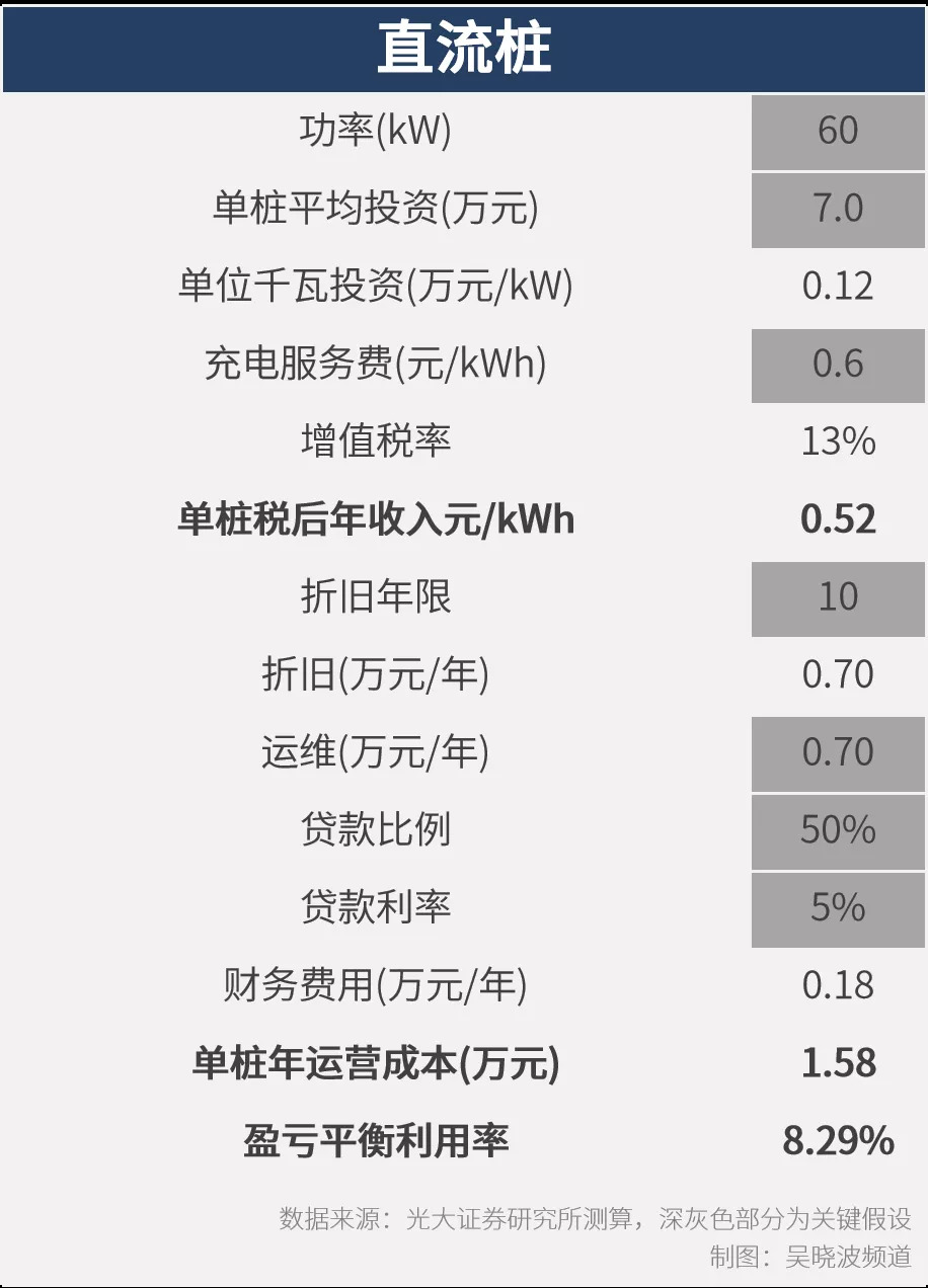光大证券对60kW直流快充桩的盈利情况做过测算,盈亏平衡时,充电桩的利用率需要达到8.29%。
