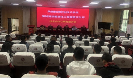 洽谈结束后,陕西能源职业技术学院组织应用化工技术专业、煤化工技术专业的学生参加了蒲城清洁能源化工有限责任公司订单班宣讲会。同学们通过聆听宣讲,了解企业文化、行业发展、人才培养、薪金待遇等政策拓宽视野,更深刻地了解了行业发展前景,逐步明确对未来的定位。随后,校企合作处、煤炭与化工产业学院组织学生和企业人员进行了现场互动交流,开展了“蒲城清洁能源”订单班报名工作。
