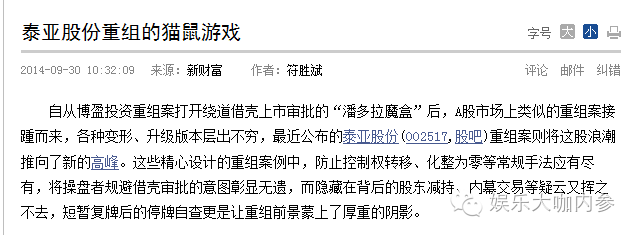早在2014年7月,欢瑞世纪就曾拟借壳泰亚股份(002517.SZ),不过这次“蛇吞象”的收购却饱受质疑: