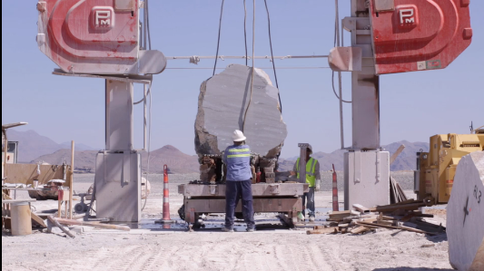 而后用吊车一块一块向堆积木一样堆放到一起: