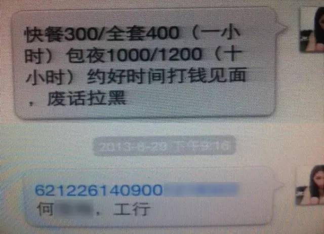 “你看我这么年轻,400块已经非常超值了。我给你一个账号,你先把定金打过来,这是我们的行规,万一大哥要骗小妹,你让我一个姑娘家怎么办?”