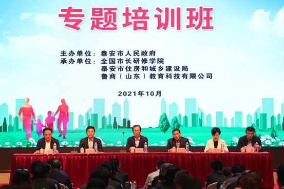 10月9日,泰安市举行城市规划建设管理专题培训班开班仪式。住房城乡建设部总经济师杨保军、全国市长研修学院党委书记宋友春、泰安市副市长赵德健出席活动。