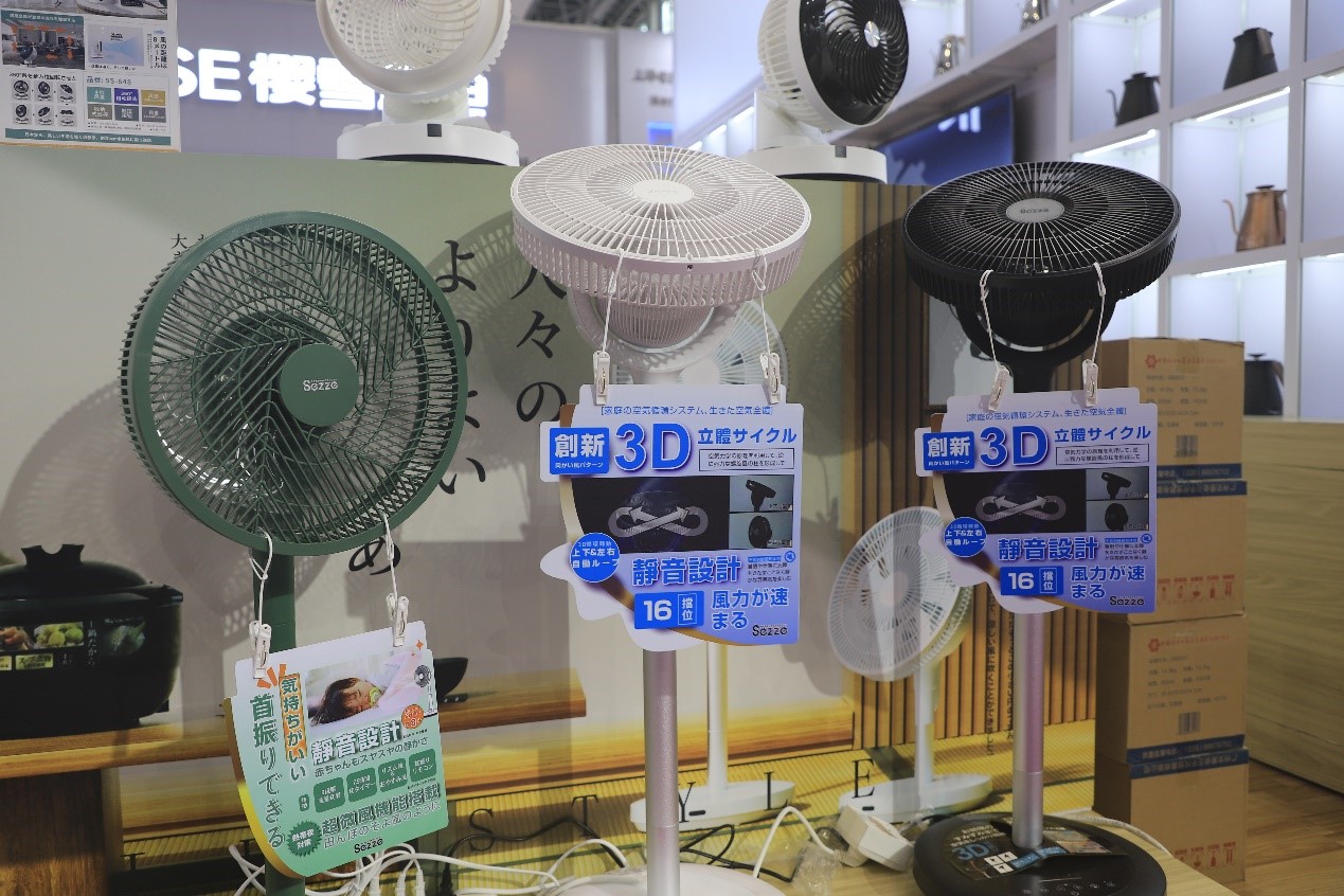 Sezze西哲株式会社主要经营家庭电器。360°自动摇头的落地扇,循环立体加热的伊贺烧陶瓷锅,展会上的智慧家居收获一批人气。