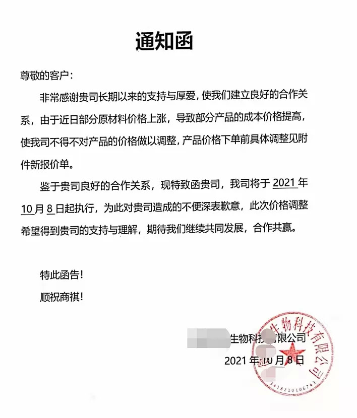 值得一提的是,在不少公司的调价函中还表示,“将最大限度保障不断供”。这也就意味着,原料或已面临着“缺货”的危机。