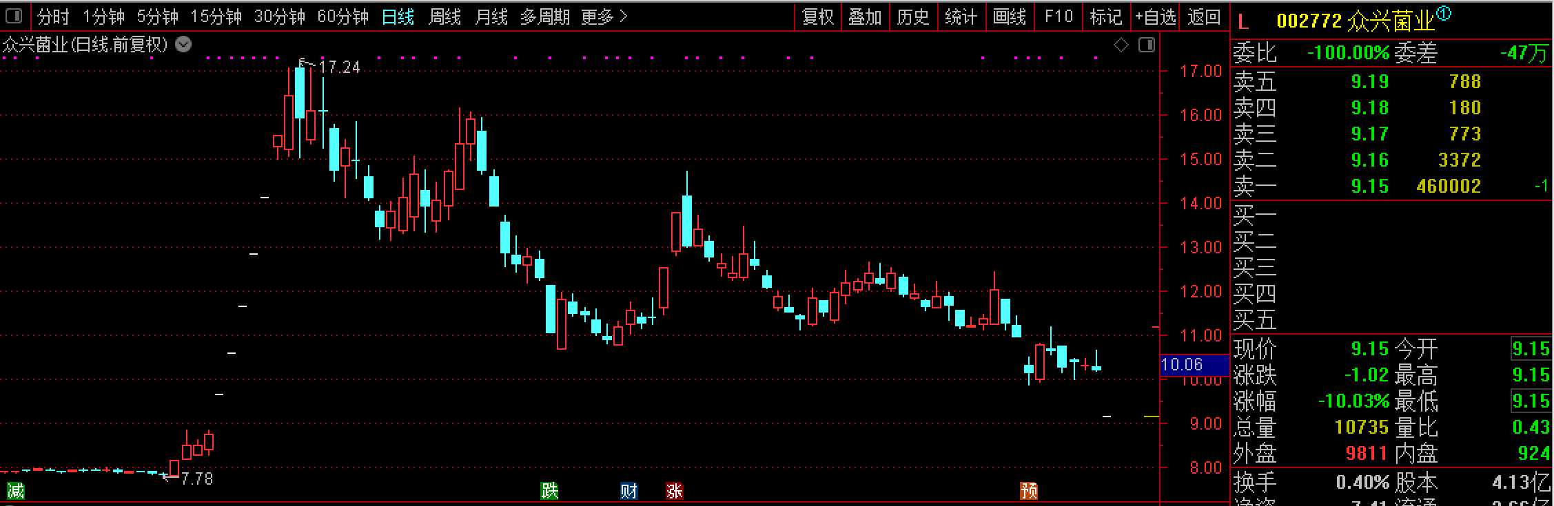 2021年8月12日众兴菌业的股价为11.39元,2021年9月24日的股价为11.36元,如今“一字跌停”后的现价为9.15元,价格差不多相当于质押的8成,未知警戒线是多少,但显然会令质权人紧张。要知道,根据众兴菌业2021年前三季度的业绩预告:预计亏损4500万元至5500万元,是难以引发众兴菌业股价大涨的。可以说这就是一场“美丽的误会”。