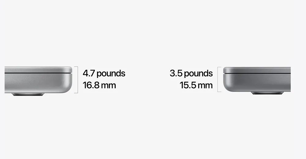除了芯片本身,MacBook Pro在ID设计上也进行了大幅升级。MacBook Pro有14英寸和16英寸两个尺寸。