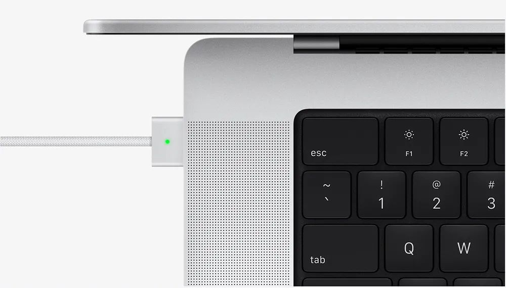在接口方面,MacBook Pro具有一个HDMI接口,三个雷电4接口、一个SD插槽、一个3.5mm耳机接口和一个MagSafe磁吸式充电接口。