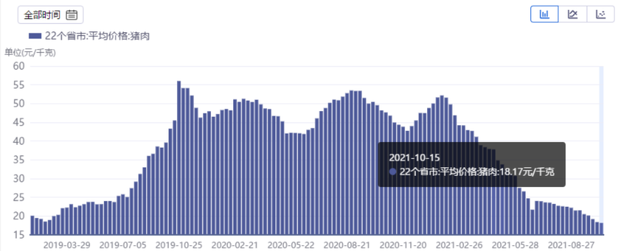不过从目前的猪肉价格来看,截至10月15日,22个省市的平均猪肉价格为18.17元/千克,处于近三年的新低,尚未出现反弹。不过近期猪企们股价已出现反应,“猪周期”的底部要到了吗?