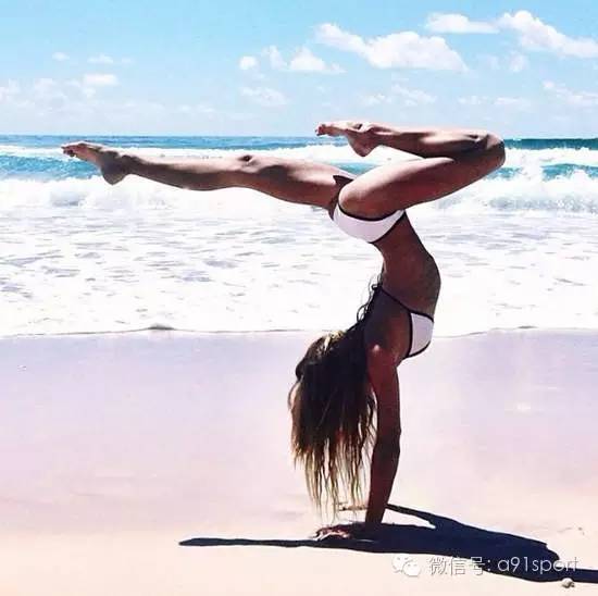 才可以在海滩放肆的玩耍倒立