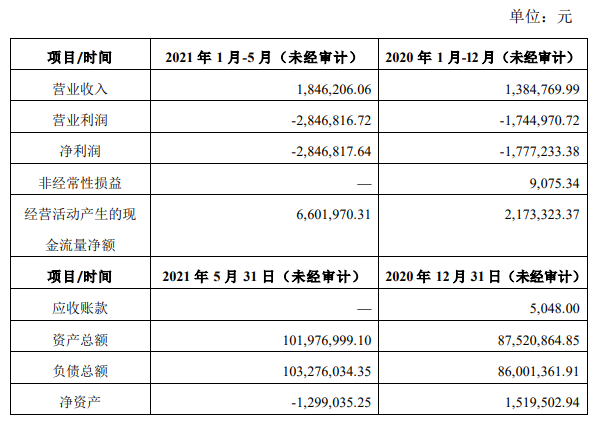 值得注意的是,古窖酒业长期处于亏损的状态。2020年古窖酒业实现净利润-177.72万元,今年1月-5月实现净利润-284.68万元,亏损幅度进一步增大。截至今年5月末,古窖酒业负债总额超过资产总额,净资产为负。