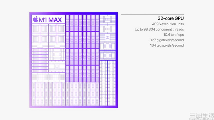 而接下来我们要讲的,可能是到目前为止还没有其他媒体分析过的一件事,那就是此次M1 Pro与M1 Max的GPU设计,以及它们背后所体现出来的产品设计思路。