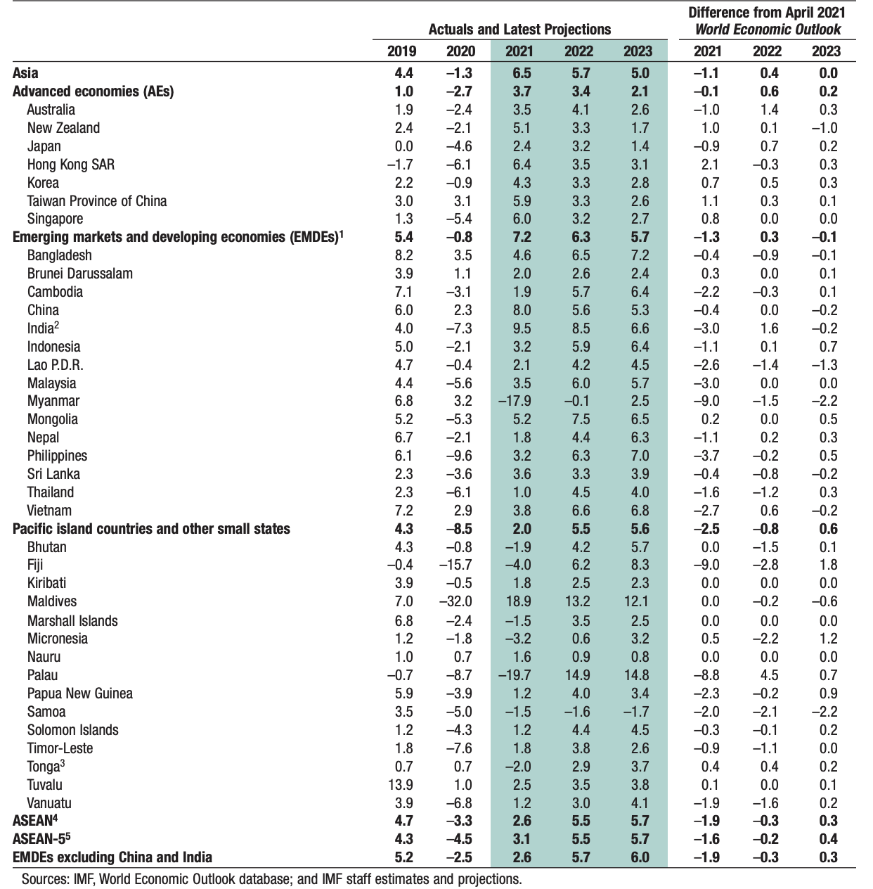 与此同时,该机构还将2022年亚洲经济增速预期从4月时的5.3%上调至5.7%,以反映该地区在疫苗接种方面取得的进展。