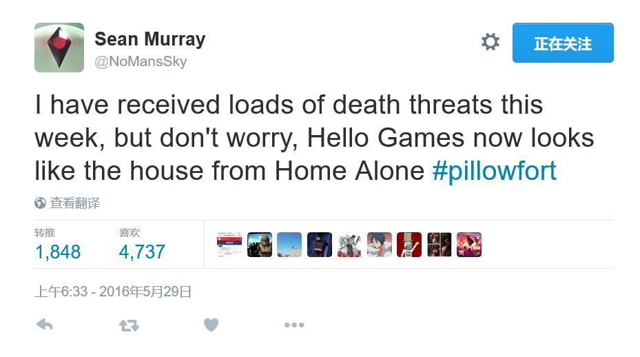 跳票的理由很冠冕堂皇,不过粉丝可是有点不开心了。制作人Sean Murray在推特上表示自己已经收到了“死亡威胁”,不过他称工作室已经布置得如同《小鬼当家》中的房子,有胆就来。