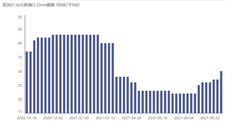 以光伏玻璃(3.2mm镀膜)价格为例,2020年四季度至2021年一季度一直处于高位,今年二季度起开始大幅下滑,价格已经腰斩;三季度继续保持低迷的态势。