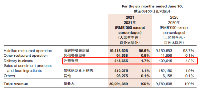 值得一提的是,海底捞除了提供到店就餐服务外,近年来还拓展了外卖业务。据财报显示,上半年海底捞的外卖业务收入同比下降15.62%至3.46亿元。海底捞对此解释称,主要是疫情转好后,外卖订单数量相应减少。