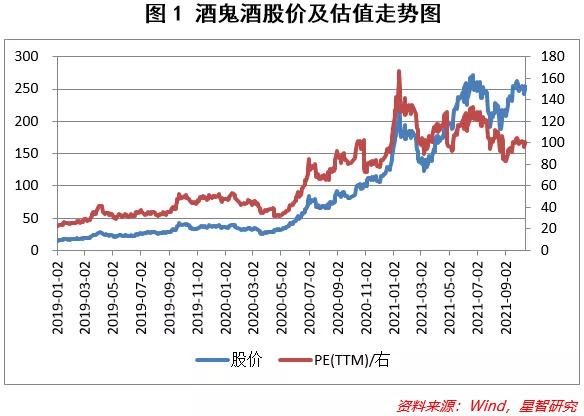 近两年来(见图1),酒鬼酒的股价增长近十倍,再一次进入公众视野,虽然营收规模仍未突破20亿大关,但估值水平却达到100倍。