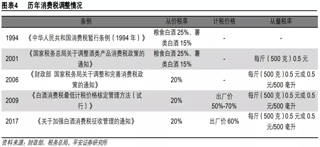 而白酒消费税,自1994年改革措施出台以来,已历经了多次调整: