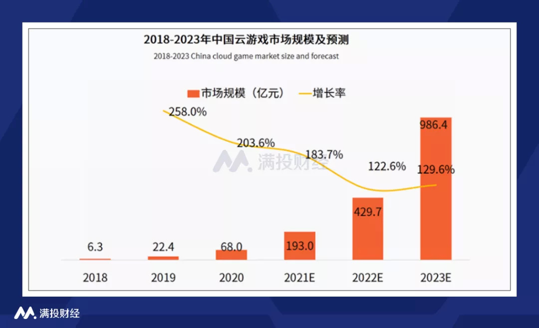 云游戏有着千亿市场规模的蓝海,但这几年却雷声大雨点小。今年元宇宙爆火后,云游戏作为元宇宙实现的重要场景,再次回到巨头们的聚光灯下,iiMedia Research预测,未来几年国内云游戏市场规模增速持续超过100%,2023年市场规模将达到986.4亿元。