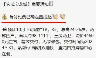 近期,据置业顾问透露,玄武宝龙城已确定首付四成起。