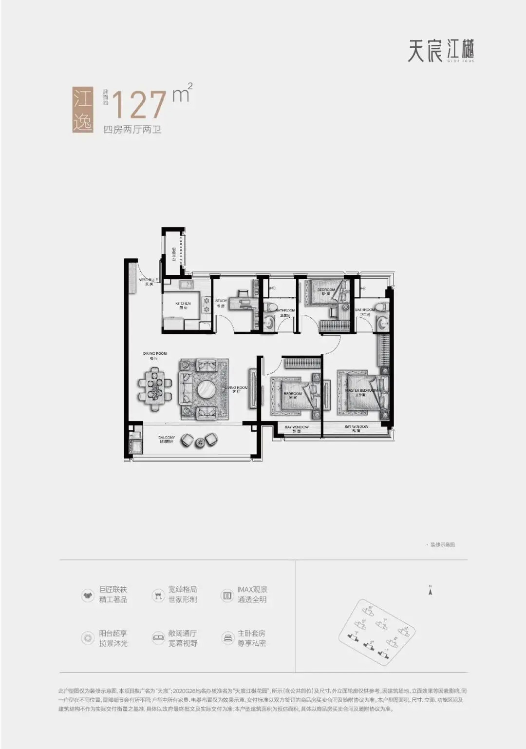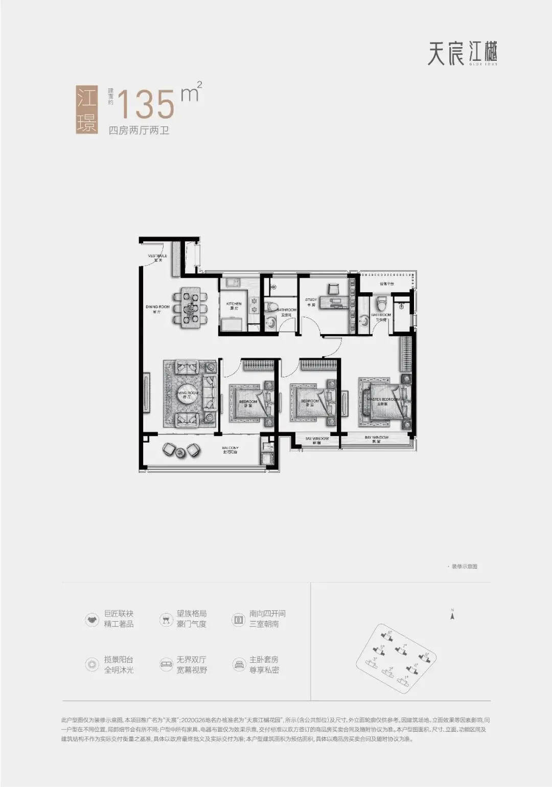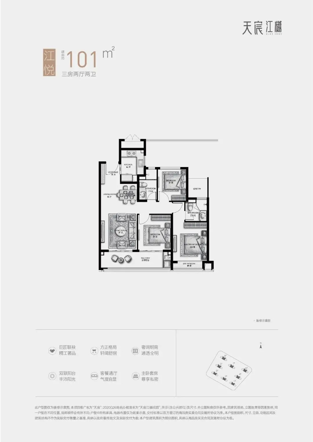 天宸江樾预计10月下旬加推5、8号楼,户型建面约101、135㎡,前期全装修销许均价33891-34567元/㎡,另有1900元/㎡升级装修包,首付8成起。