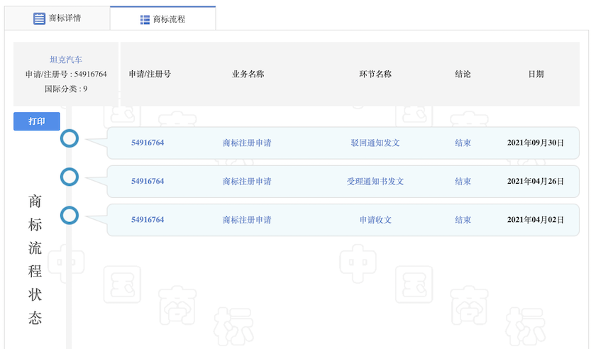 但该品牌在独立之后的1年多时间内,申请的与“坦克”相关的商标申请均处于无效状态。而长城旗下另外几个主要品牌/产品系列如哈弗、欧拉、魏牌、长城炮等商标均已申请成功。