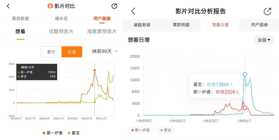 (灯塔、淘票票《第一炉香》《喜宝》想看数据对比)
