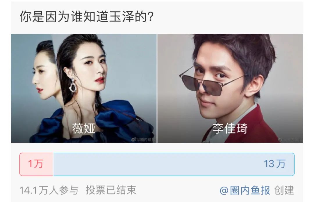 在最近一个博主发起的“你知道玉泽是因为薇娅还是李佳琦?”投票中,有13万网友选择了李佳琦,1万网友选择了薇娅。