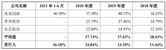 招股书显示,兆易创新、普冉股份和东芯股份三家可比公司2018年至2020年主营业务毛利率分别为28.43%、27.63%和27.74%,而恒烁股份同期毛利率只有11.44%、13.29%和24.84%。明显低于行业平均。