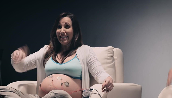 10位妈妈事先都已做过健康检查,她们孕期都已超过28周。这意味着宝宝能在妈妈肚子里动弹了。他们请专业的软件公司,用动作感知技术将宝宝在肚子里的动静转化成电子信号,然后用代码编了一个足球游戏。