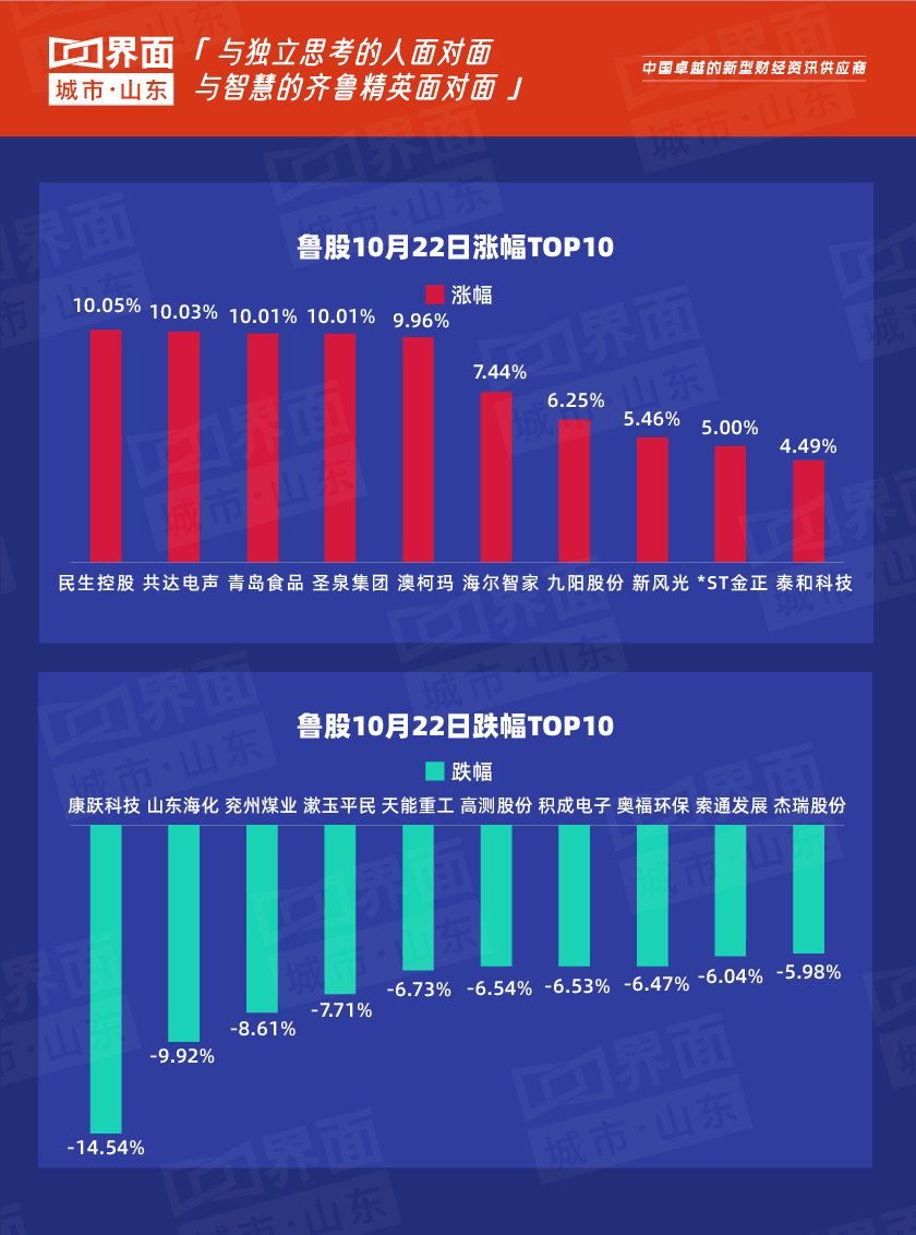 10月22日,山东68股上涨,7股持平,180股下跌。