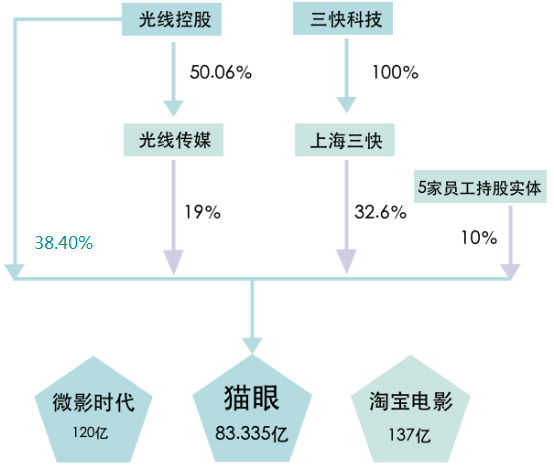 由上市的光线传媒和非上市的光线控股两方面持股达到控股的目的,这样的交易结构看起来略显复杂。
