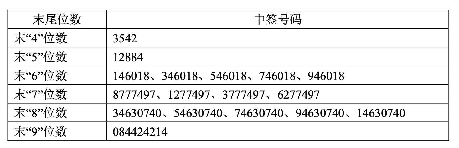 零点有数:中签号出炉,共36119个