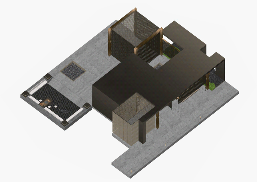 在格调上,不管是建筑构件还是桌椅装饰,铜木色系匠造,自带一种匹配格调人士的隐奢意境。在暖阳映射或灯光烘托下,借助网格透与隐的特质,彰显舒享的慢生活氛围。