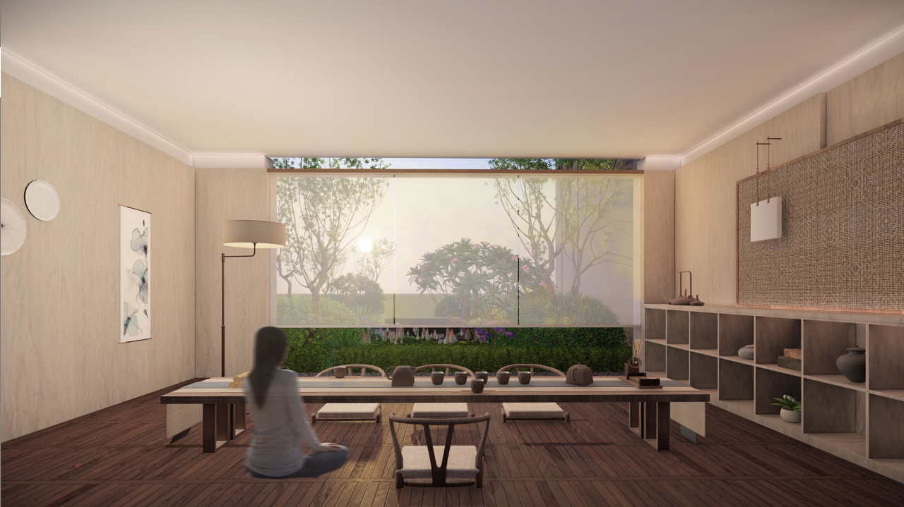 借鉴了京都安缦酒店、杭州四季酒店等国内外顶尖度假酒店,将东方禅意的高级感融入社区茶亭的匠心营造中,同时精心考量在社区中的选址,相得益彰地同社区自然景观和社交动线融为一体。国际社区生活与东方精神禅意的碰撞,成为中骏独特的社区生活IP。
