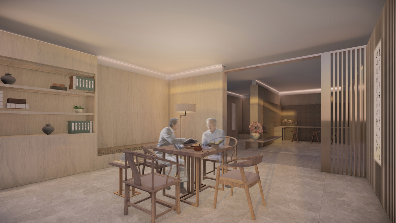 2.0时代,茶亭融入到社区会所中,但多为地下空间,无专属设计。