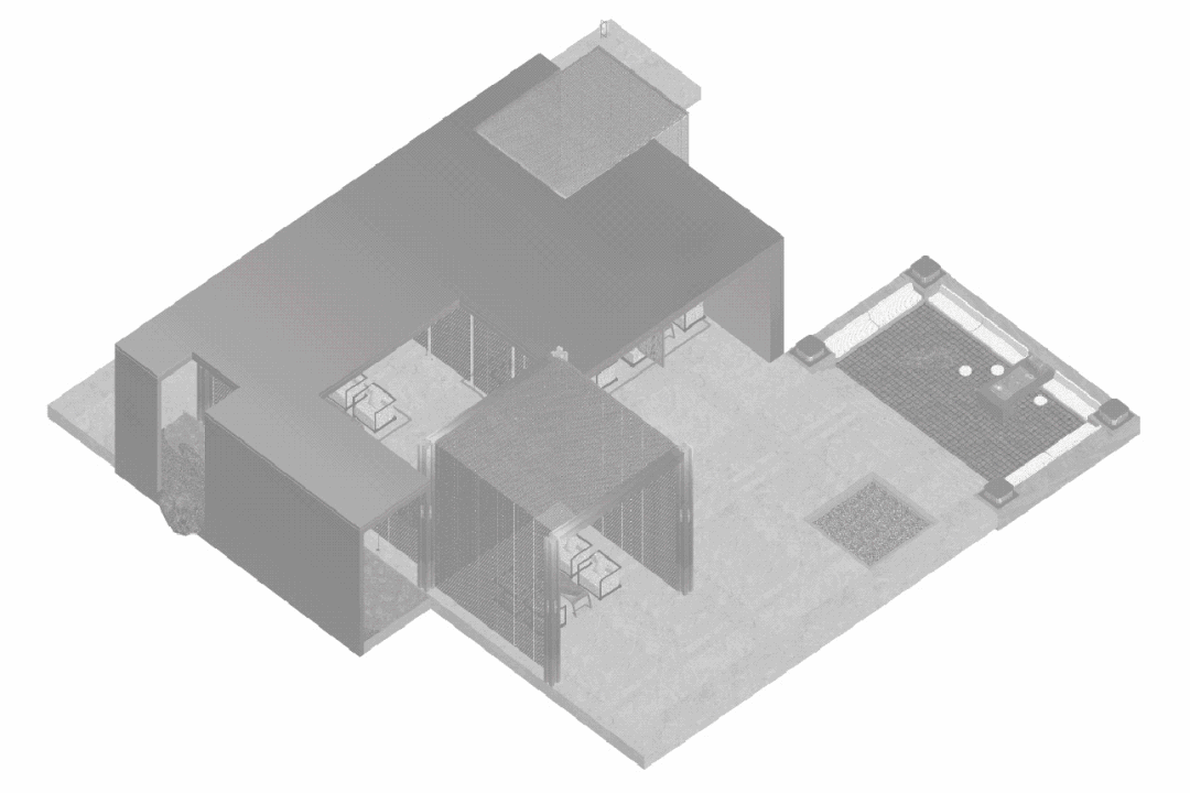 在开放区一墙之隔,有一方格栅围挡的天地,