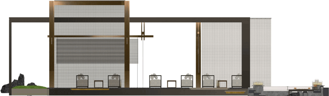 卷帘垂下,光影交错间为会客交流提供天然的温度调节。