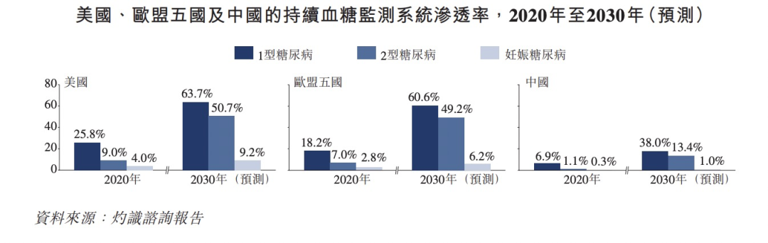 根据灼识咨询报告,2019年,全球糖尿病的发病人数为4.87亿人,中国为1.19亿人,预计于2030年中国将达到1.43.亿人。