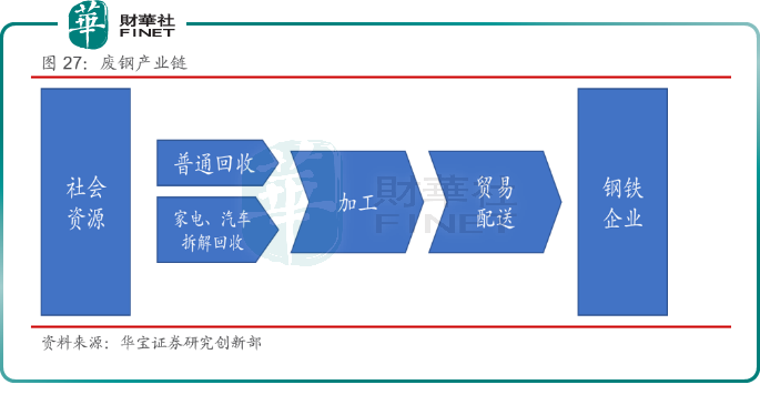 据了解,废钢经回收、加工、贸易最终成为转炉和电弧炉冶炼原材料构成了完整的产业链。