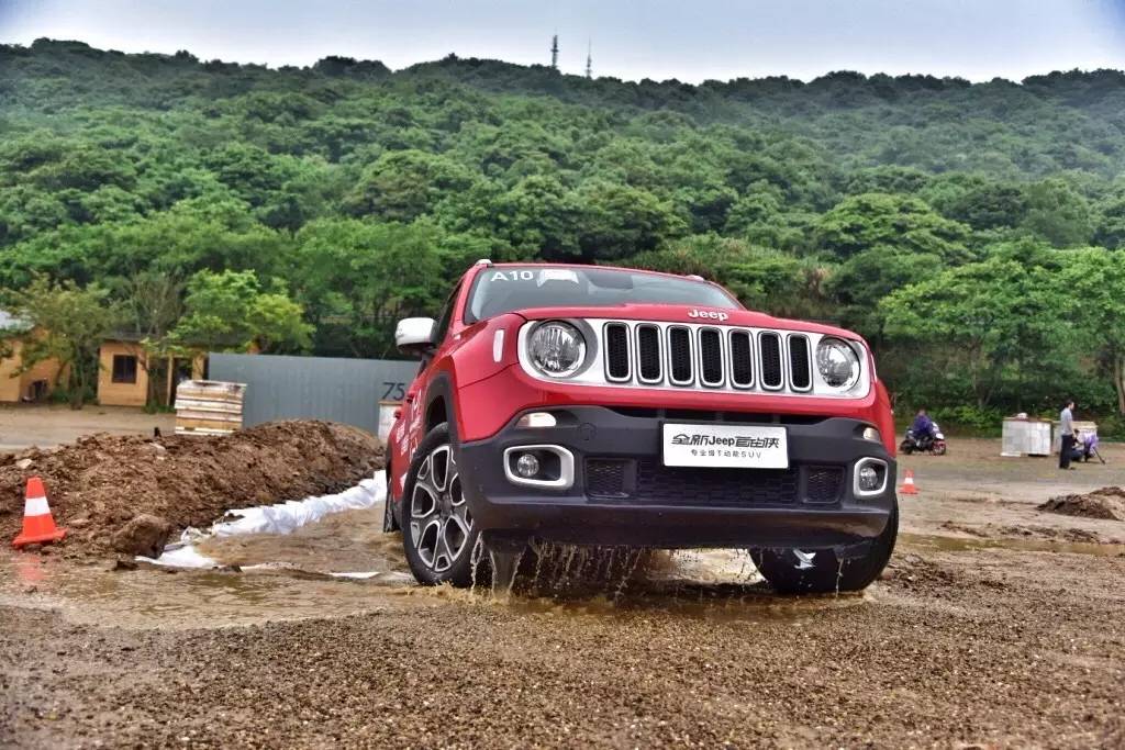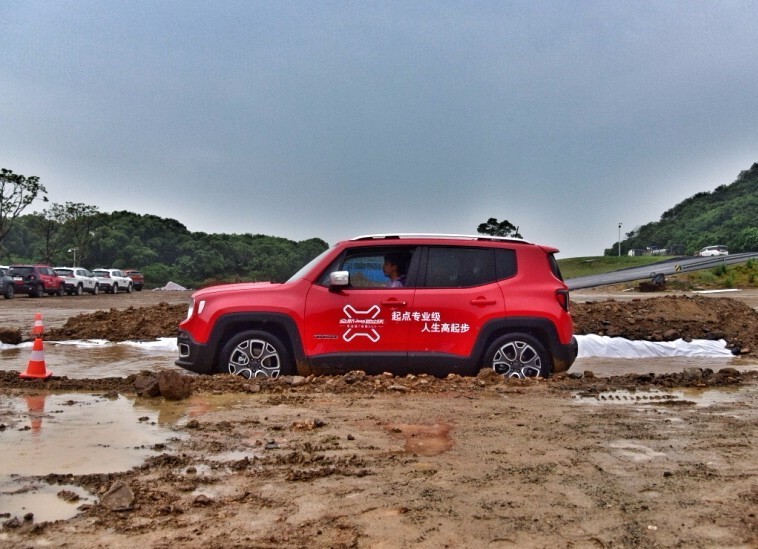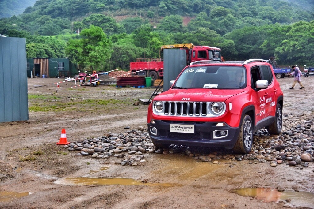 我们首先来看看1.4T+7DCT车型的全地形驾驶能力。在场地试驾中,我们体验了鹅卵石,大侧倾角,爬坡以及水坑等多项非铺装的行驶状况模拟。对于这些全路况的驾驶,两驱Jeep自由侠凭借动力输出,以及19.5度接近角、29.6度离去角、181mm的最小离地间隙,都能够轻松应对。