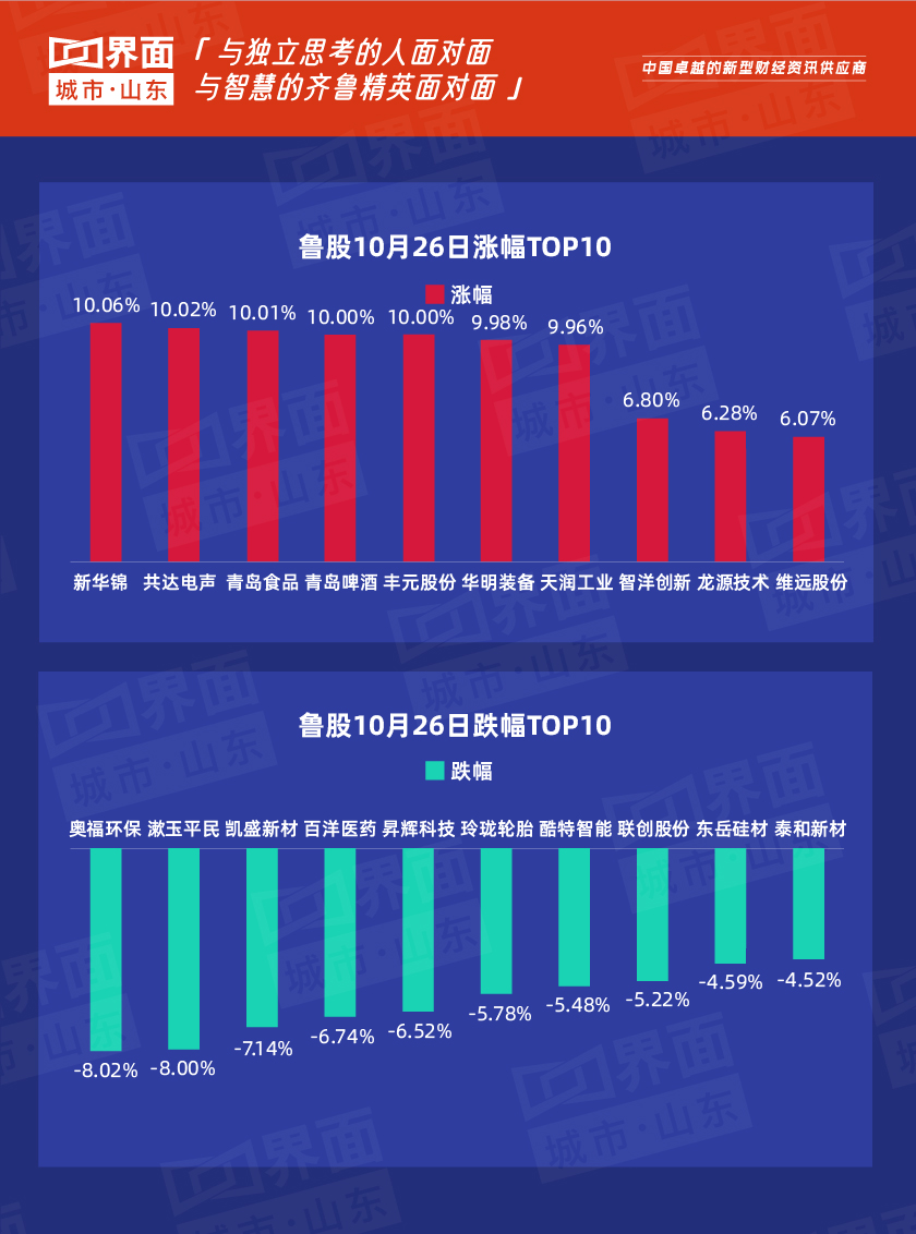10月26日,山东77股上涨,4股持平,174股下跌。