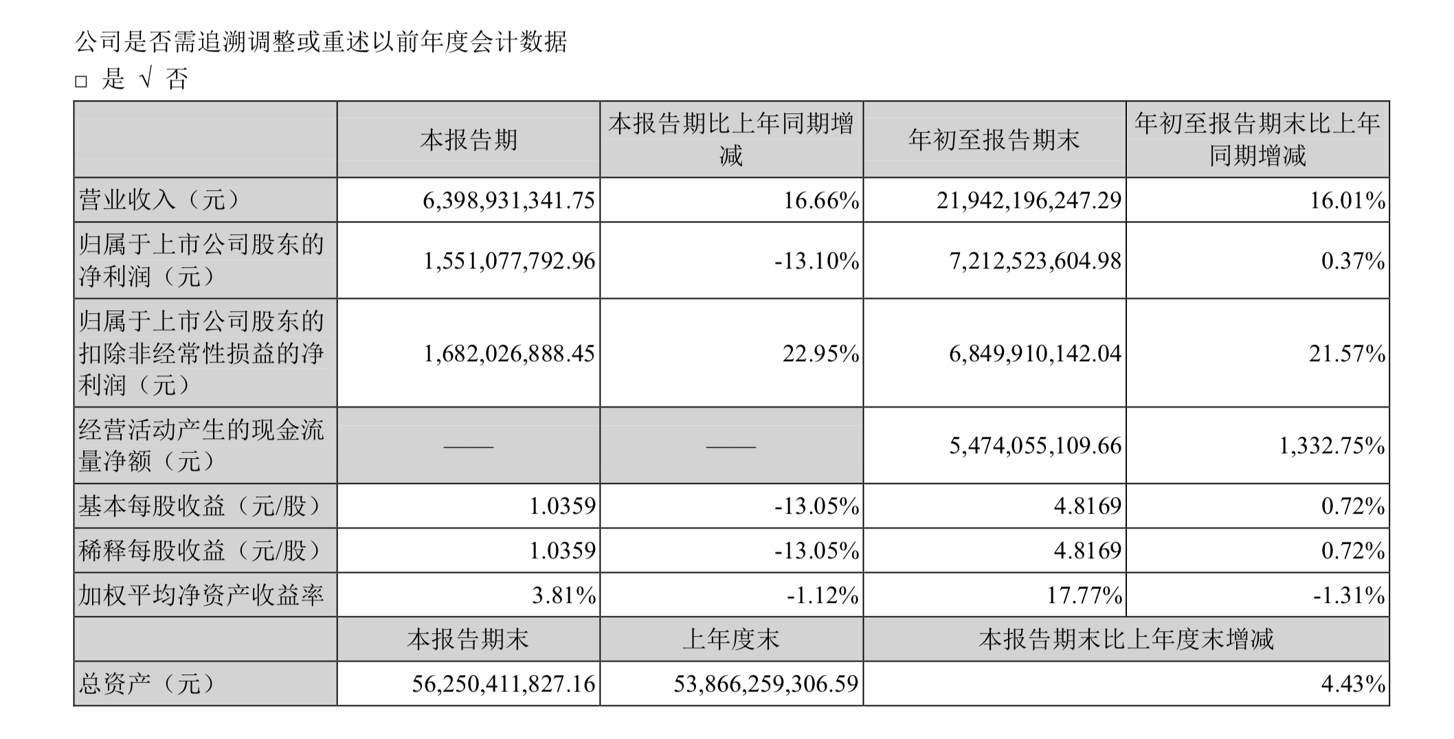 洋河股份第三季度实现营业收入63.99亿元;归属于上市公司股东的净利润为15.51亿元。