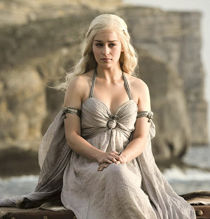在剧中,艾米莉亚饰演的丹妮莉丝为了从多斯拉克人手中逃脱,把整座神庙变成了火海。当那些俘虏她的多斯拉克人都在大火中被烧成了灰烬时,她完好如初地从火海中走出,当然,她的衣服没有幸免。